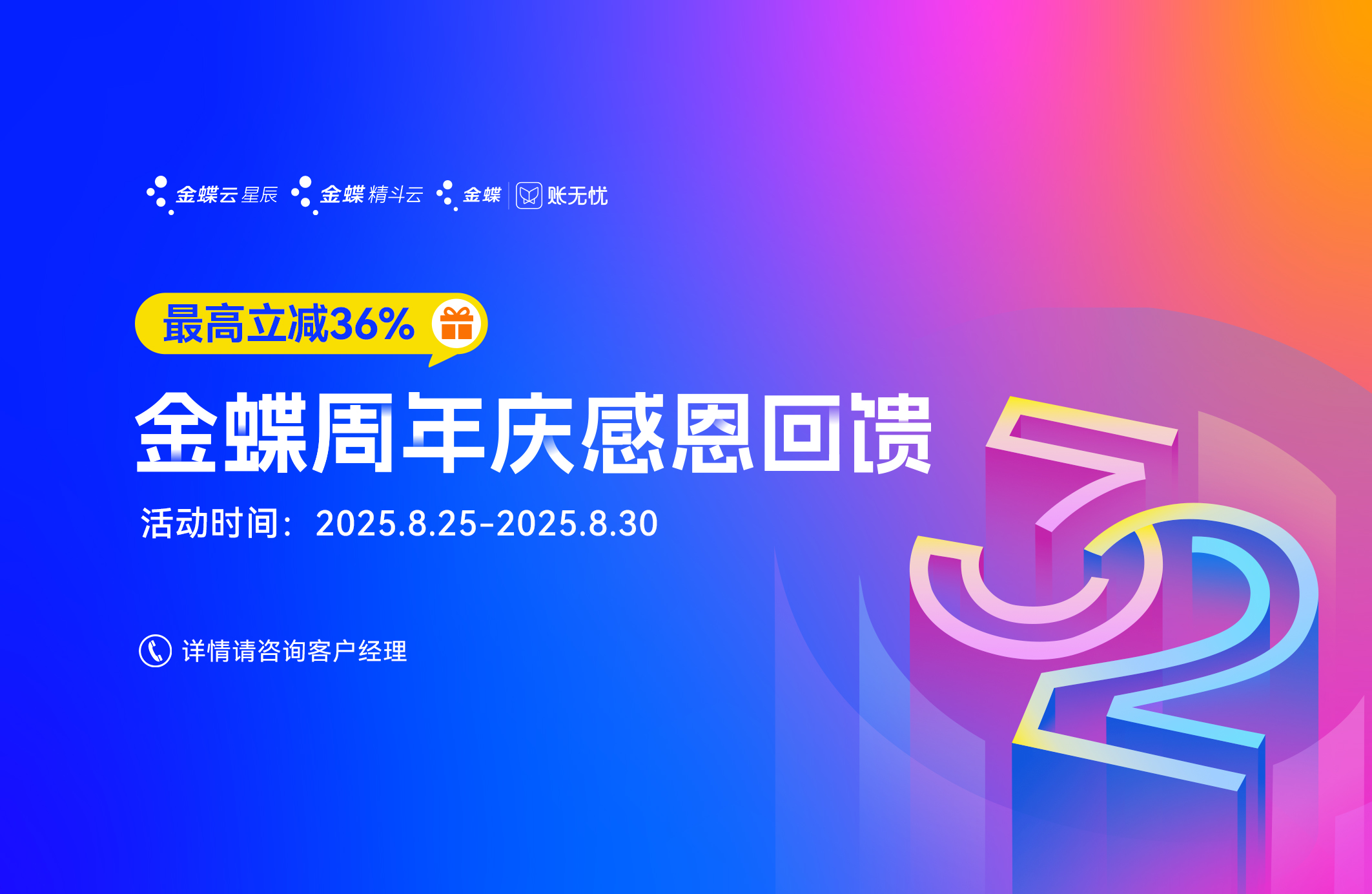 金蝶云会计节618促销狂欢限时特惠,最高立减36%。