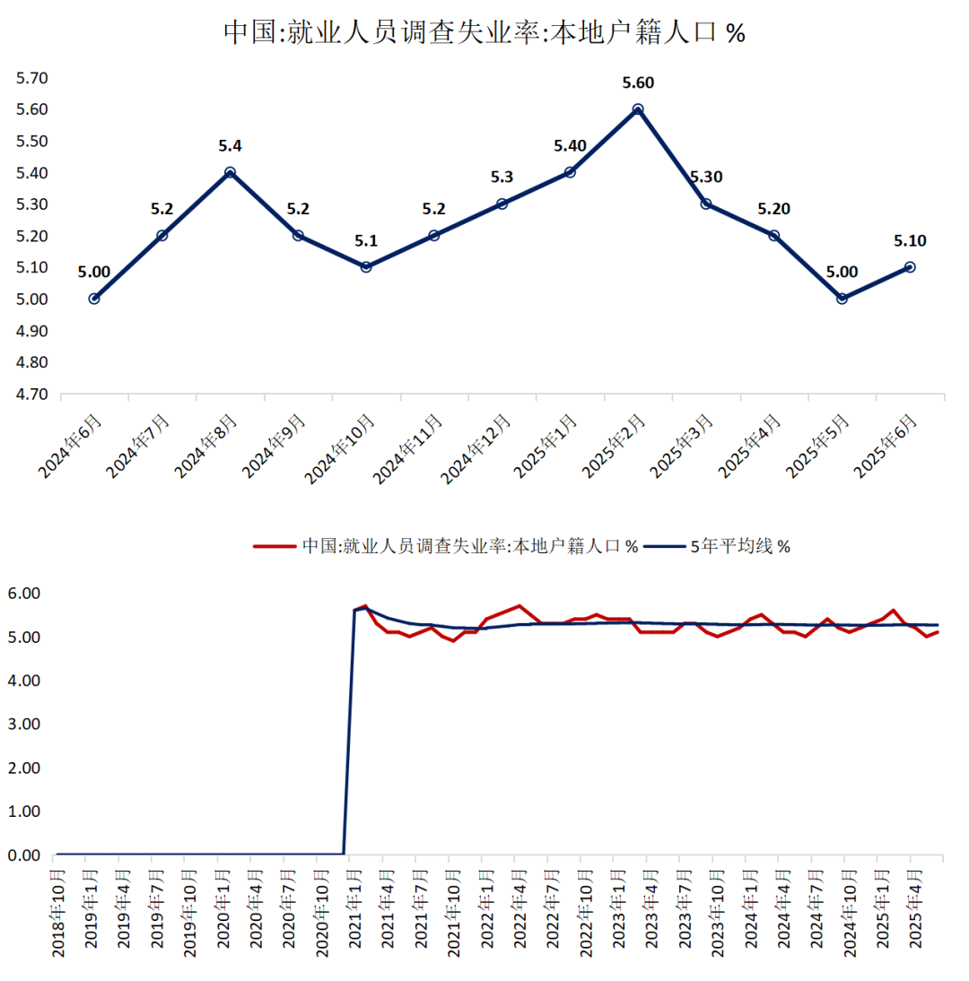 6月本地户籍人口失业率5.1%,高于5月的5.1%,结束连续3个月下降。