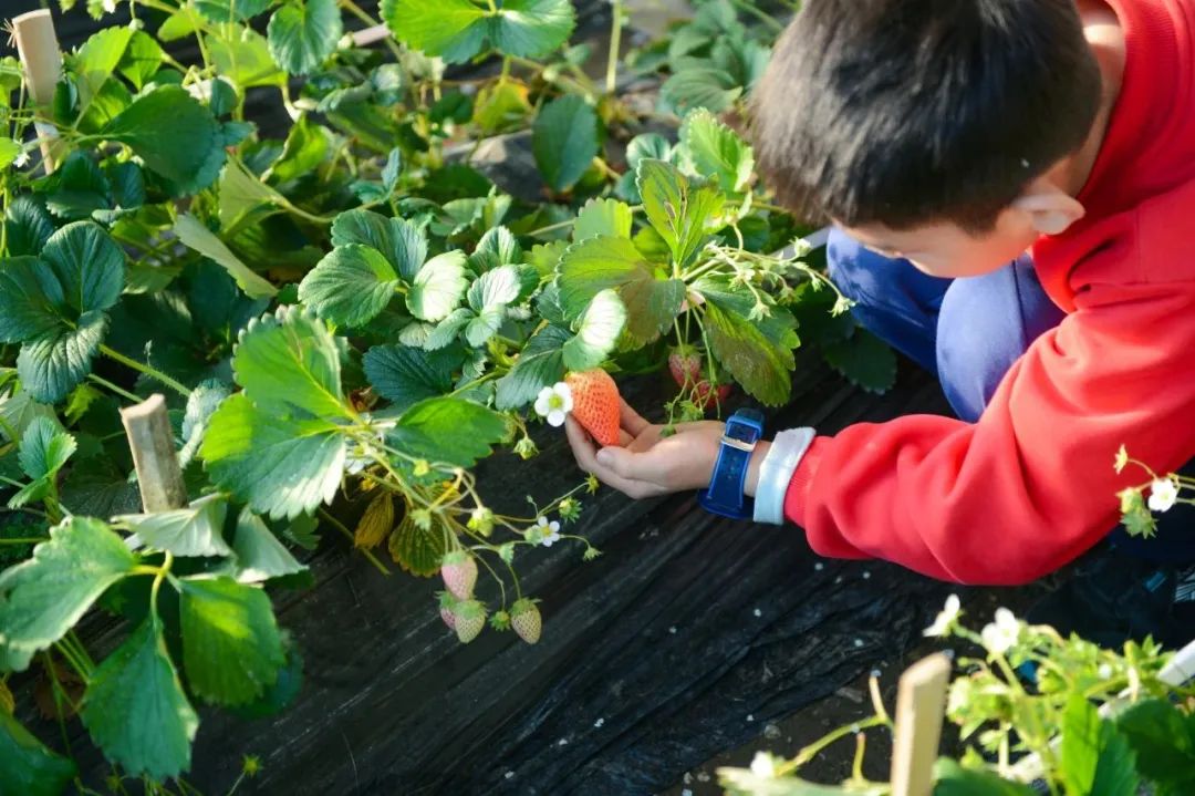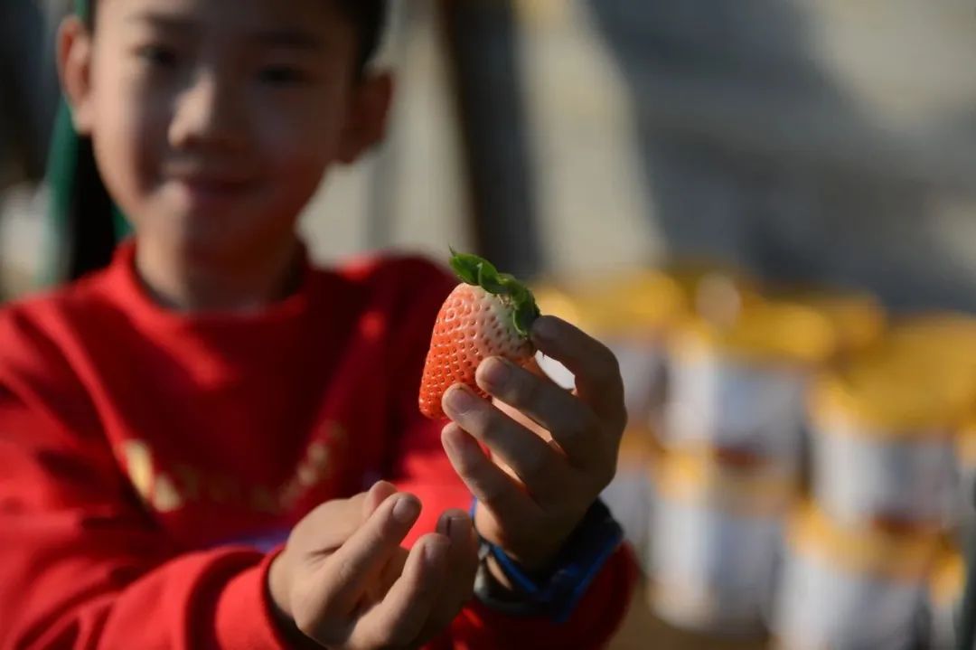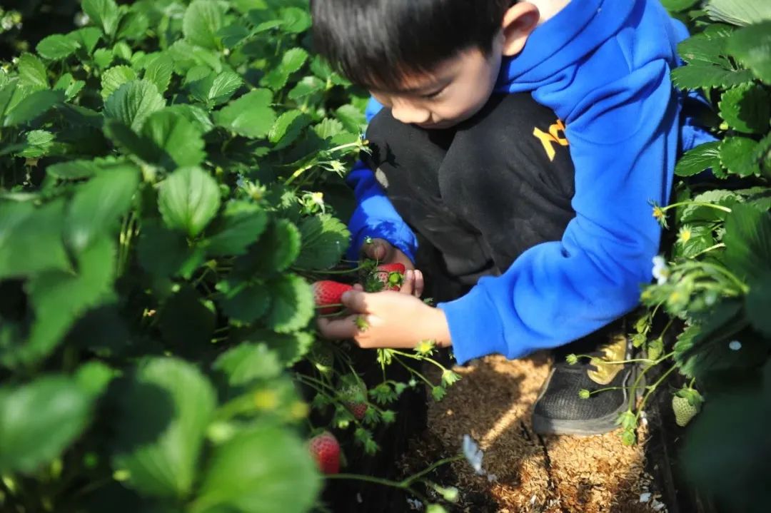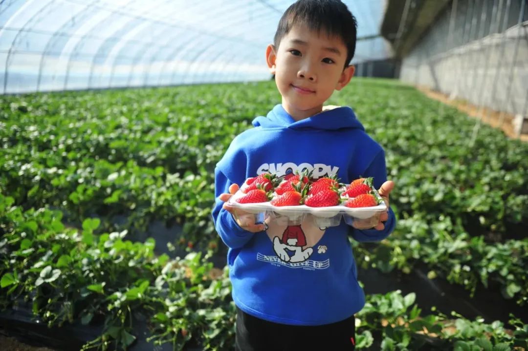 采摘之余,小朋友还可以学习草莓相关知识,在温暖的大棚内玩乐一番,不畏寒冷,尽享亲子“莓”好时光。
