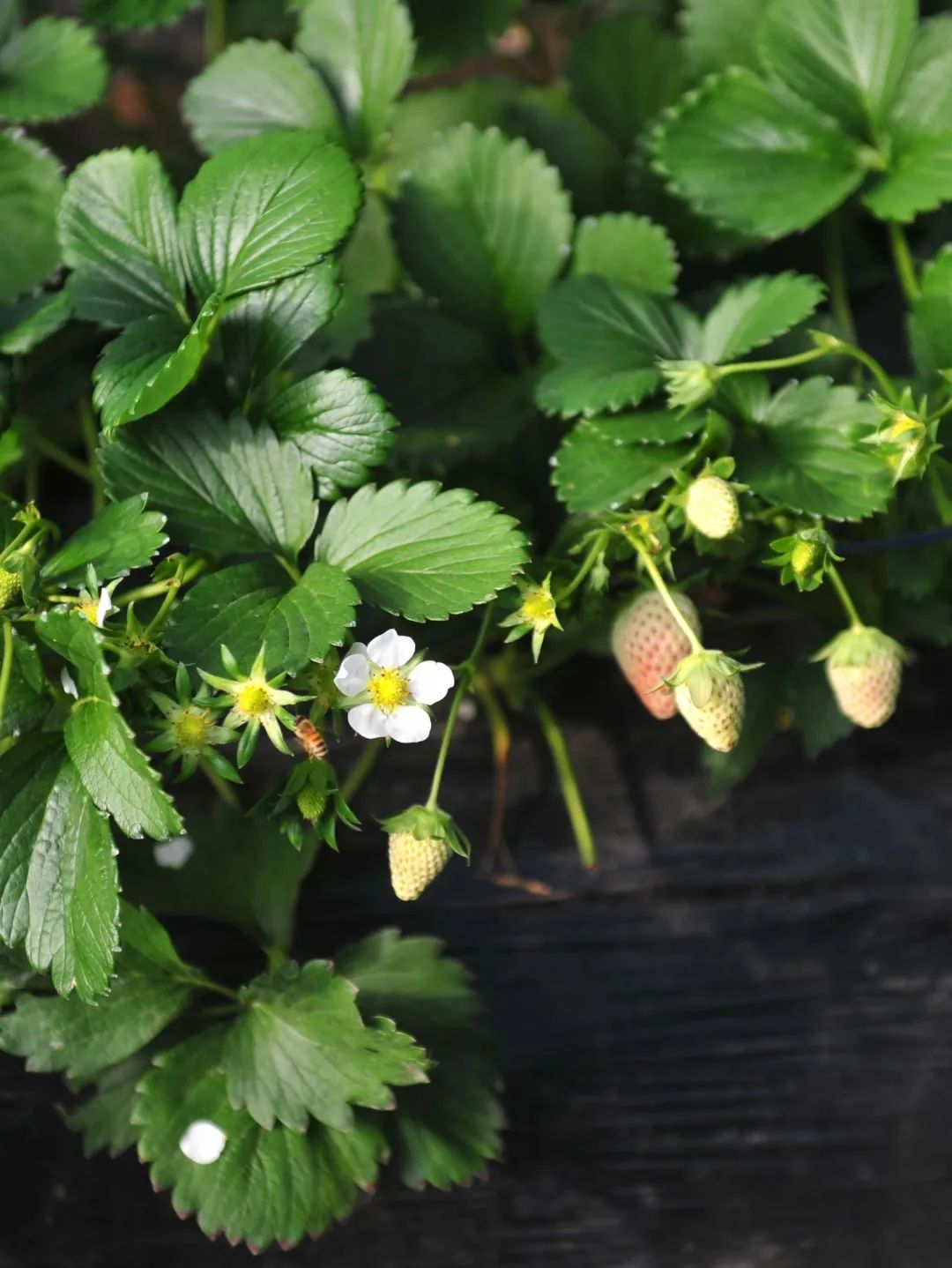 这里的草莓有甜宝、斐玉等四五个品种。每一颗小小的草莓都独具风味,小巧又精致,散发出沁人心脾的诱人香味。
