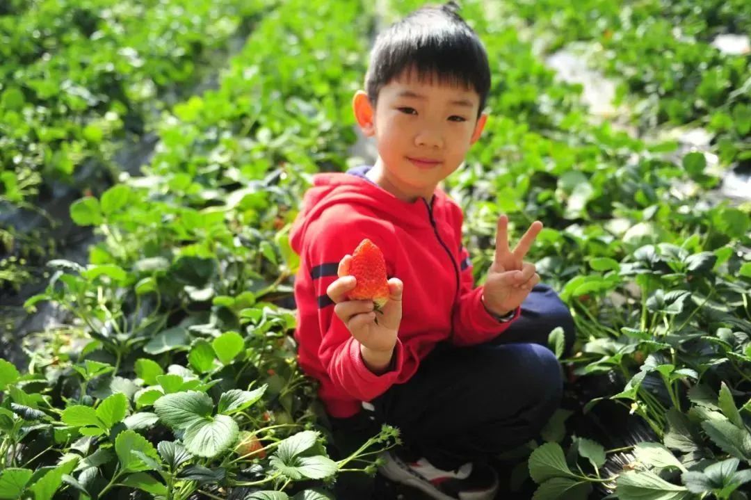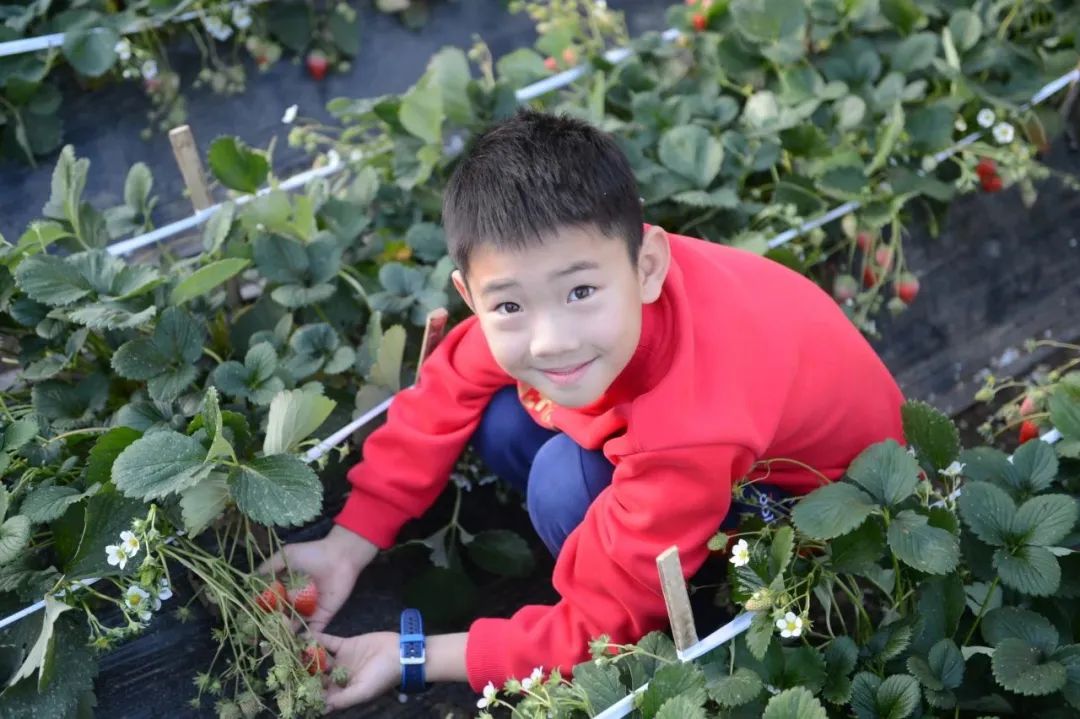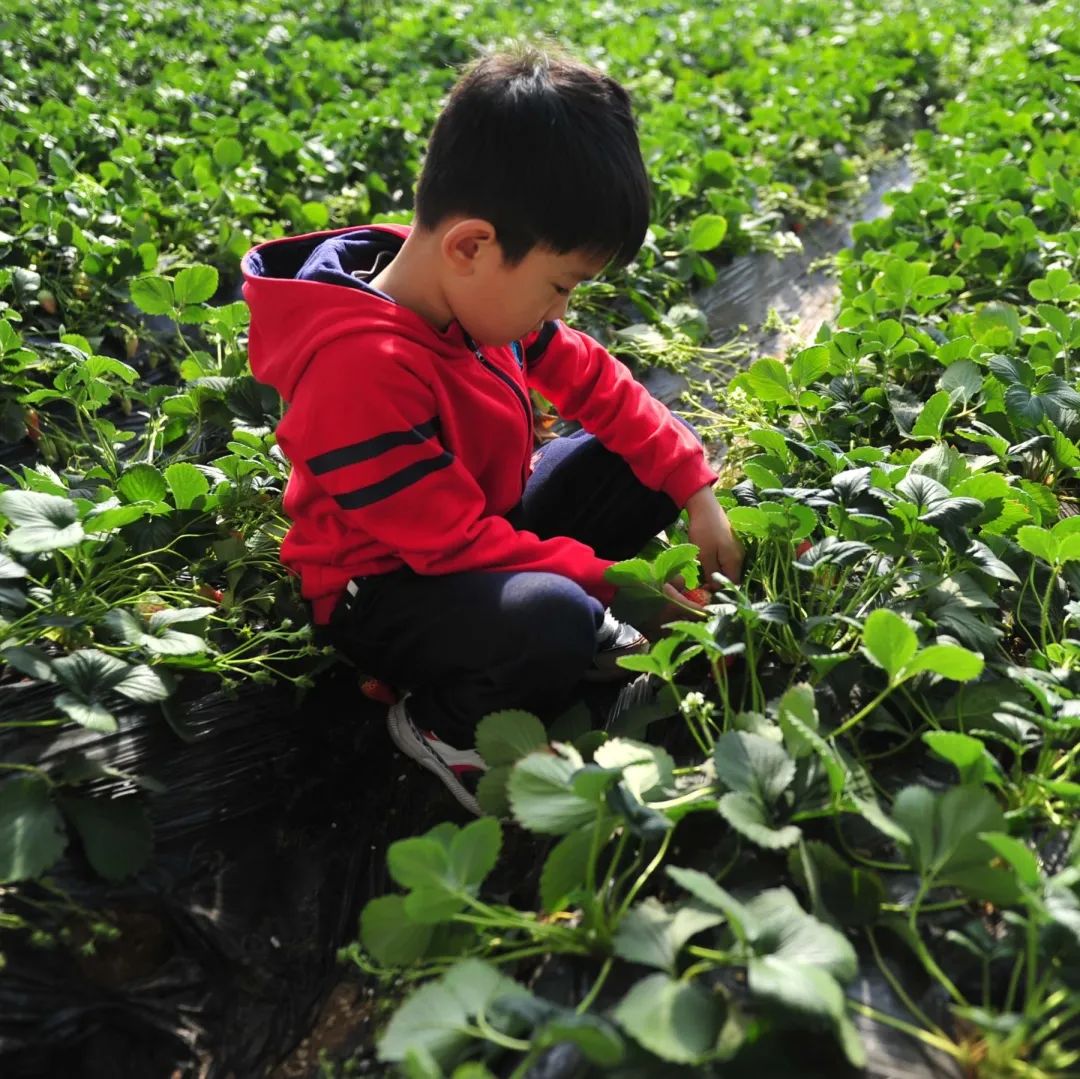 大棚内,有的草莓仰着红扑扑的小脸等待采摘,有的草莓娇羞地藏于叶下,半遮半掩,好像在和你捉迷藏。快带上孩子一起,享受采摘草莓的快乐吧!