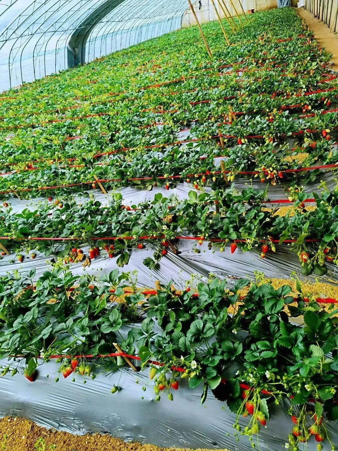 有些草莓园的大棚里的地面比较泥泞,棚里泥土很多,建议做好衣服、鞋子保护措施。
