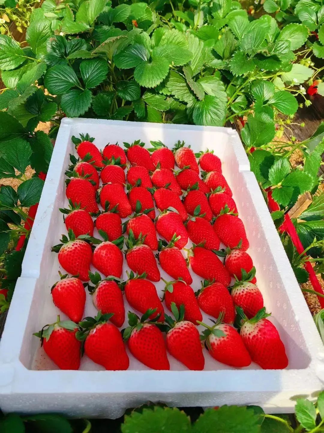 把一颗颗饱满的草莓放进筐中,不一会,就已经收获满满一筐了!简直成就感拉满!