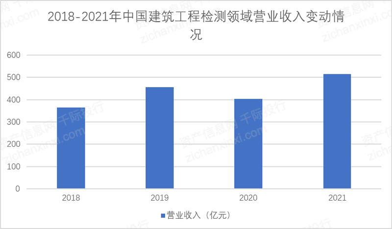 图 2018-2021年中国建筑工程检测领域营业收入变动情况