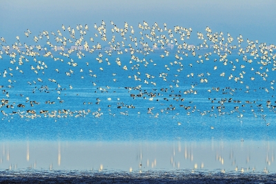 沉湖国际重要湿地,万鸟齐翱翔。
