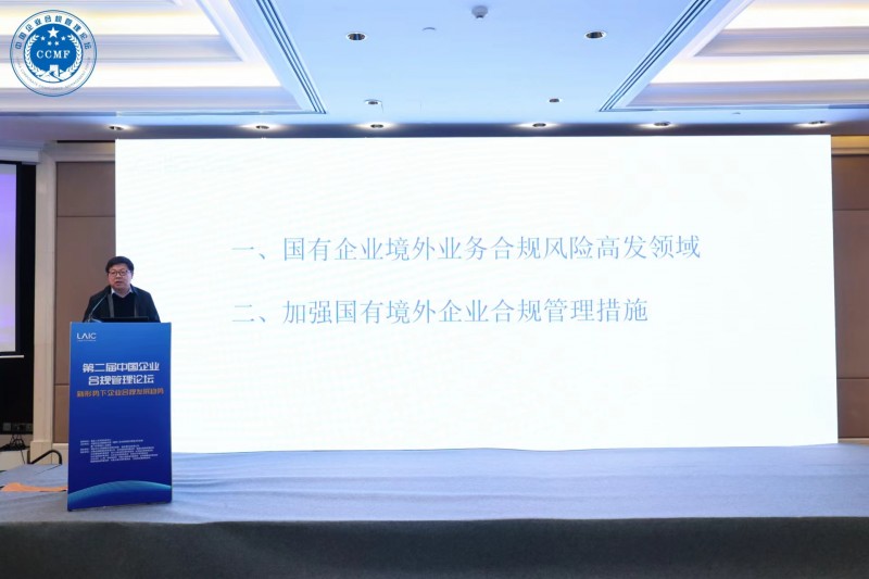 中国企业联合会副理事长、中国企业联合会合规委员会常务副主任刘鹏以央企海外合规管理重点为主题,从国有企业境外业务合规风险高发领域和加强国有境外企业合规管理措施两方面讲解了十个央企海外重点风险领域,即出口管制与经济制裁风险、网络安全与数据治理风险、境外公司治理风险、境外投资税务管理风险、境外投资安全环保风险、境外股权代持风险、员工出入境风险、反腐败合规风险、反洗钱合规风险、反垄断合规风险,并对八项治理措施进行了分享。