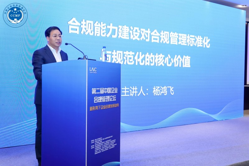 民建中央法制委员会委员、中国轻工企业投资发展协会法务部主任、《企业合规师职业技术技能考试指导教材》主编、北京首联律师事务所主任和律务通公司、兰德合规公司高级顾问杨鸿飞发表题为《企业合规管理能力培养与合规的规范化标准化发展》的主题演讲。杨鸿飞认为,人才是第一生产力,具备一种能力是一件事能否做好的关键。作为企业合规师职业申请参与人、行业标准的主起草人和中国第一套企业合规师职业考试指导教材主编,经过企业合规师国家职业申请的参与和标准的制定、教材的编写、理论的研究和参与企业合规体系建设实践等,他总结出对企业和专业人员合规能力的重视和培养方向,认为要掌握三种合格的合规能力。第一掌握合规知识体系,包含政治学、经济学、法学、管理学、风险管理学、内控管理学、流程管理学等。第二掌握建设实务体系能力合规要求的认知能力、合规风险的识别与评估能力、合规行为的执行能力以及合规文化的培育能力。第三掌握的合规能力是企业及员工在经营管理活动中遵守法律法规、监管规定、国际条约、国际规则、标准、行业准则、商业惯例及企业章程、规章制度和伦理道德的能力。这样才能促使合规体系建设达到标准化和规范化发展,保障合规管理体系的实效性,才能从根本上解决由形式合规向实质合规的转变。杨鸿飞表示,从事合规业务管理必须具备综合合规能力,才能做到合规管理的适用性、充分性和有效性。
