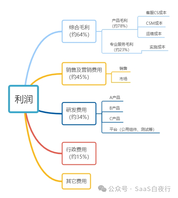 毛利:SaaS毛利约为78%,专业服务(主要是实施)的毛利提升到约23%