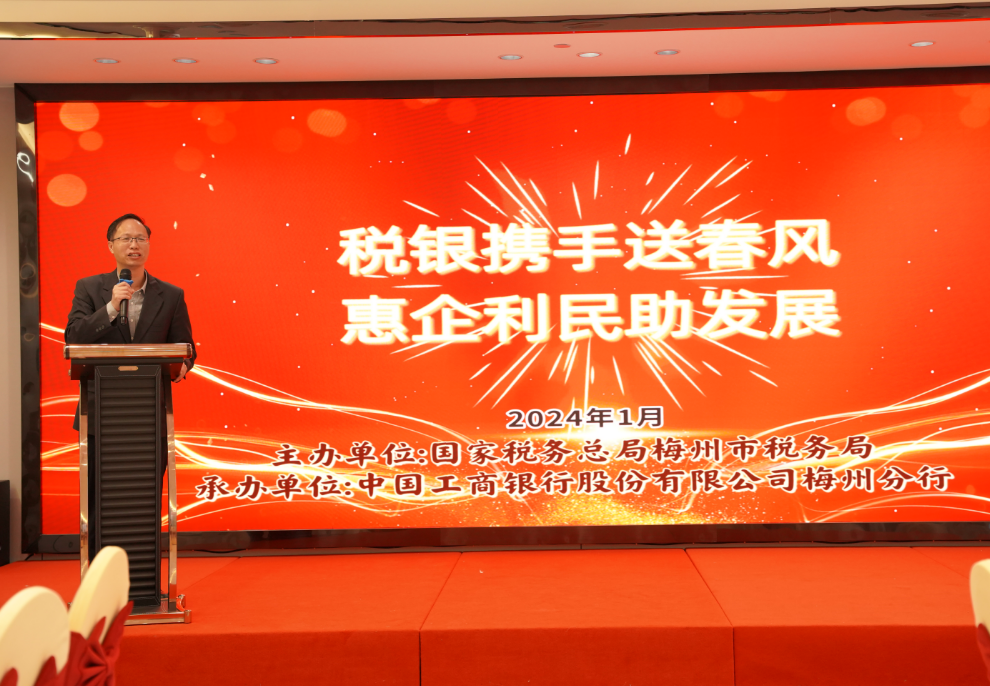 为进一步加强对涉税专业服务行业的相关政策宣传辅导服务,提升服务实体经济质效,2024年1月19日上午,国家税务总局梅州市税务局联合工商银行梅州分行举办“税银携手送春风,惠企利民助发展”主题宣导活动,辖区60多家财税行业服务机构受邀参加。