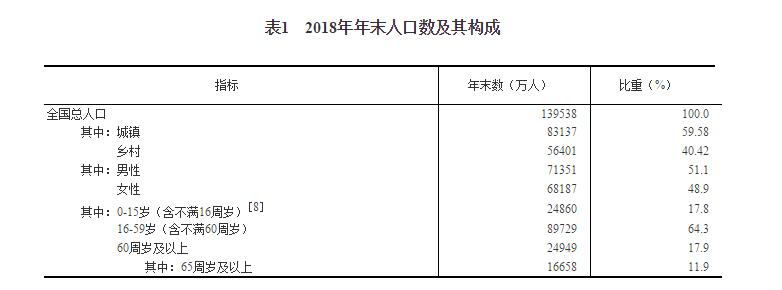 [8]2018年年末,0-14岁(含不满15周岁)人口为23523万人,15-59岁(含不满60周岁)人口为91066万人。