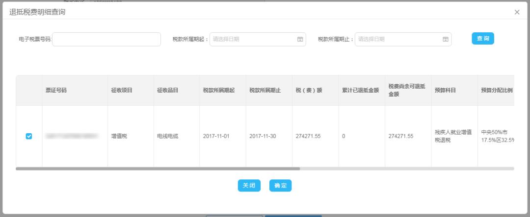 勾选需要申请退税的税票信息,然后点击[确定]。税票信息会带回主界面。