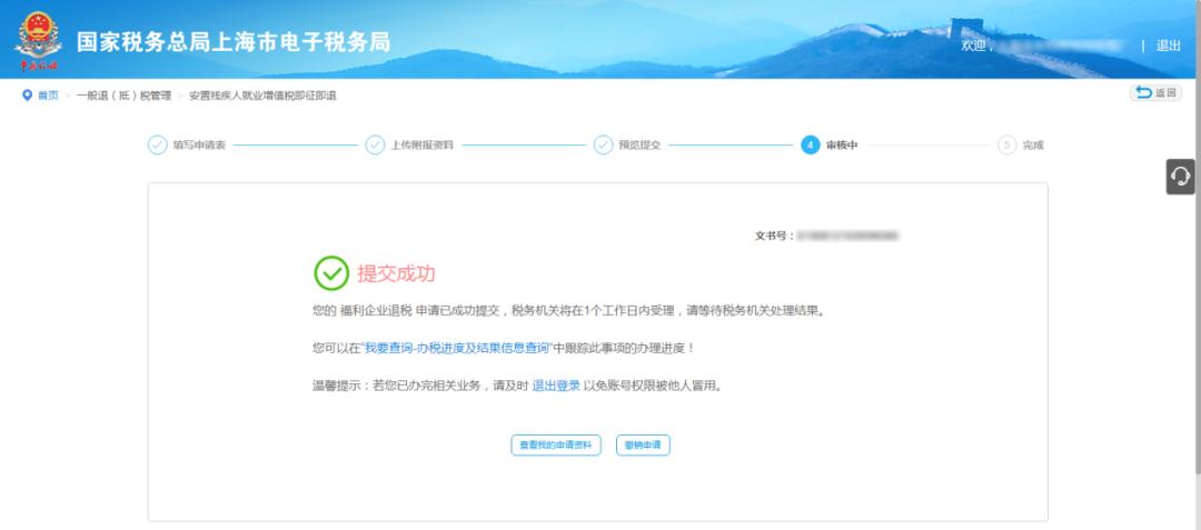 提交成功的事项可以在“我要查询”—“办税进度及结果信息查询”中进行查询受理状态。