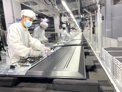 近年来,长虹财务公司为长虹智慧显示工厂等一大批重点项目建设累计提供各类融资支持超过60亿元。图为长虹多媒体产业公司的长虹智慧显示工厂生产线。供图:长虹集团