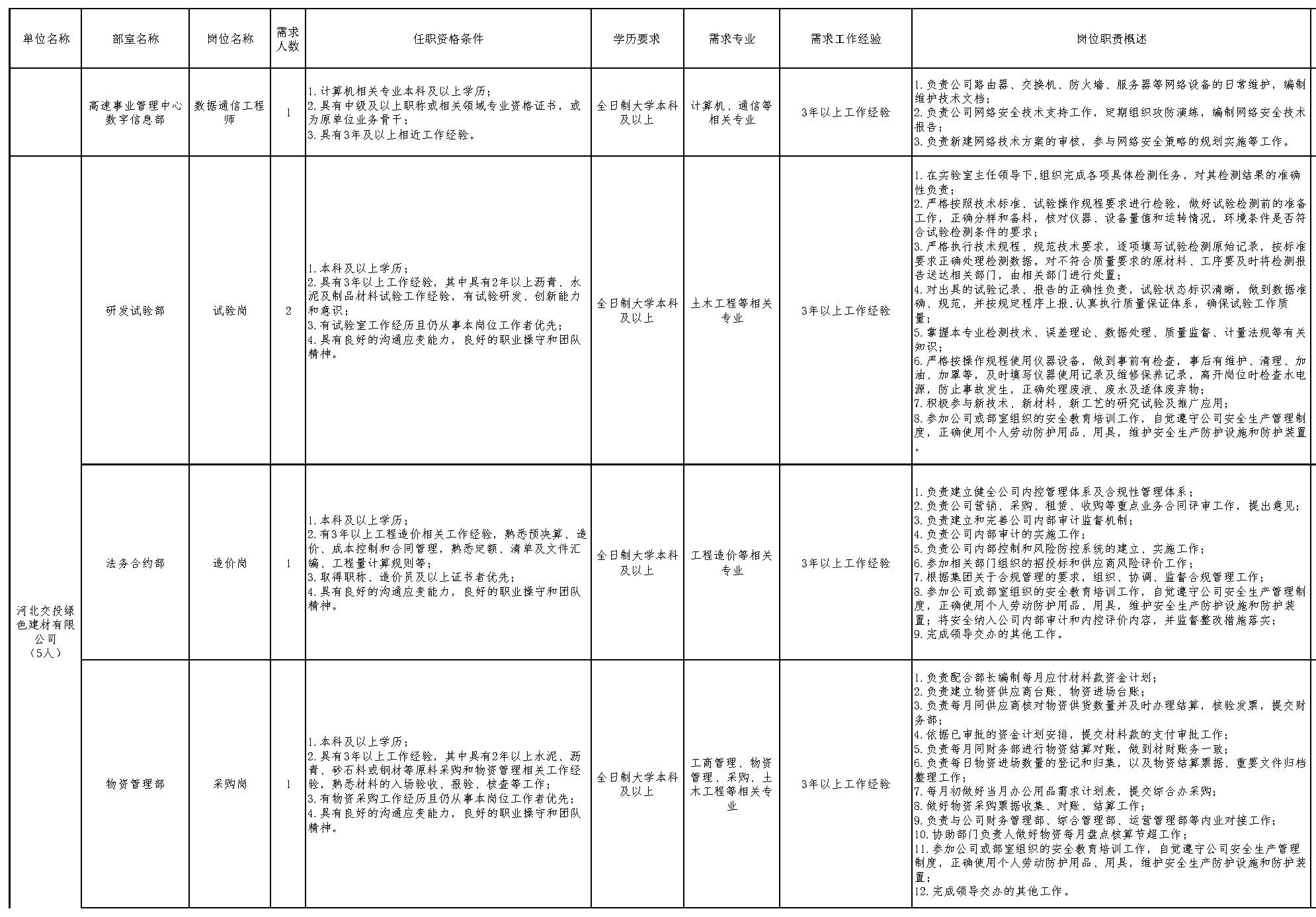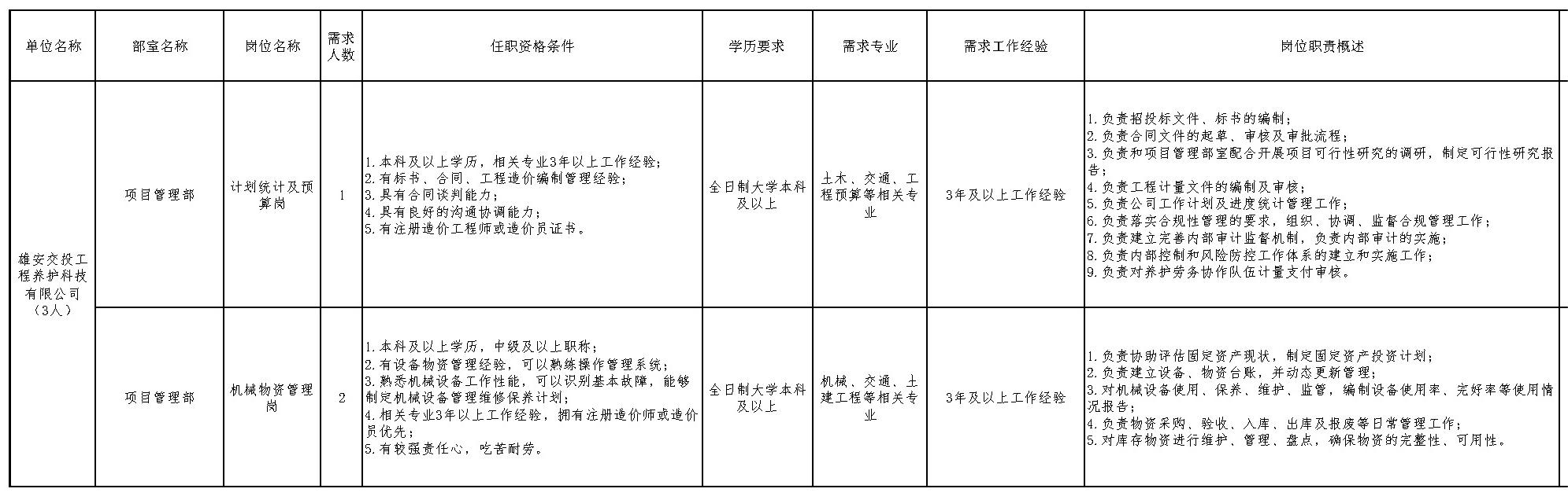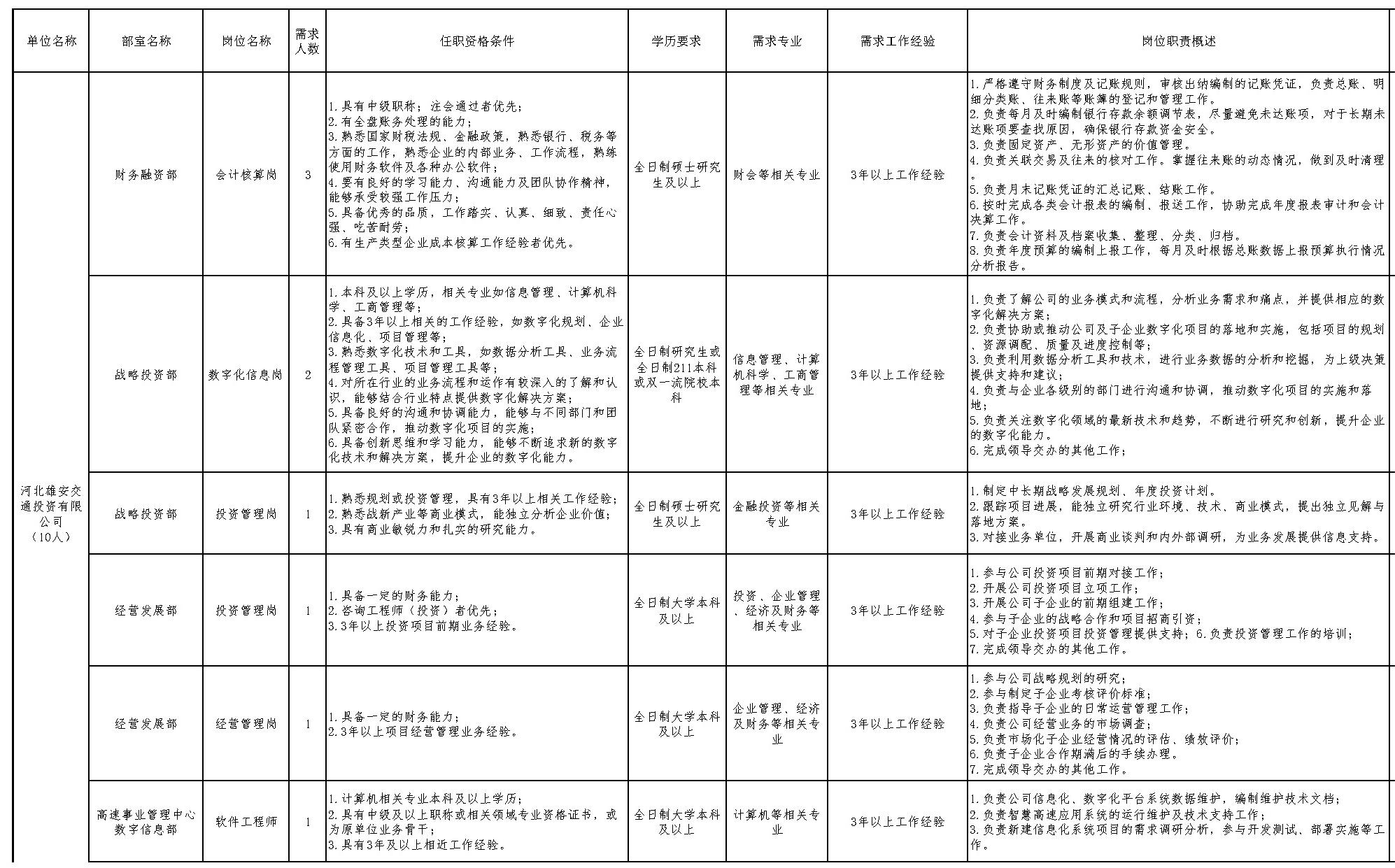 ●河北雄安交通投资有限公司公开招聘28名工作人员