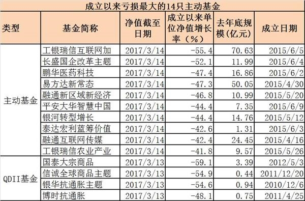 黑榜:14只成立以来亏损最大的主动基金