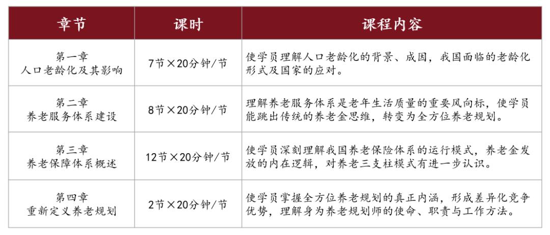专业养老规划师线上课程内容