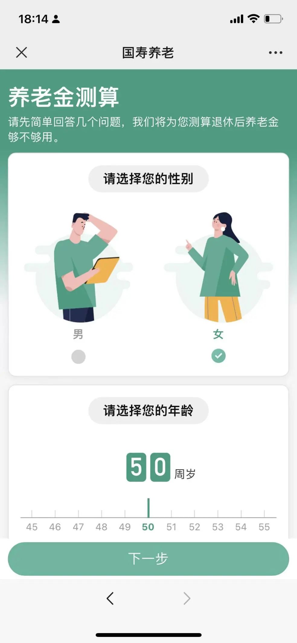 (2)市场上还出现更多专业退休金融评估工具。如中国人寿养老在公司微信服务号推出“个人养老规划服务系统”,该系统由企业自主研发,基于大数据和精算原理搭建专业养老财务测算模型。