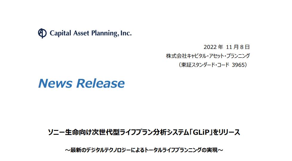 2022年,索尼人寿更新了原有的“生活计划分析系统”,推出的人生计划分析系统“GLiP”(Grip, Goal based Life Planning Support Service),为每一位用户提供适合的全面人生规划。