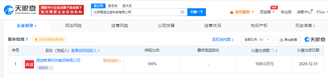 股东信息显示,该公司由高途教育科技集团有限公司全资持股。