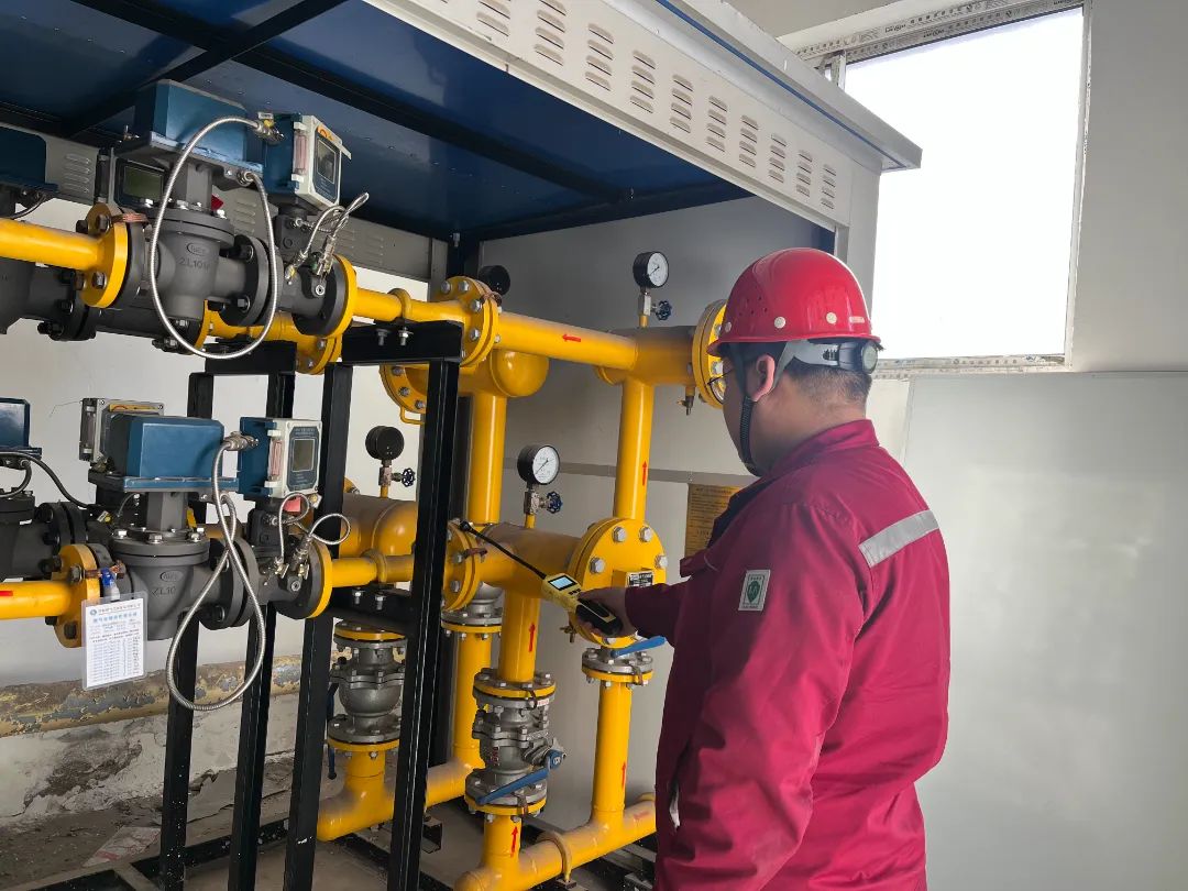 在室外的供气设备工艺区,检修人员正在进行巡回检查,仔细查看设备运行状态,对各个连接点进行泄漏检测,并通过数据采集分析比对,掌握设备运行状态。检修人员还前往城区用户家中对燃气设施、连接软管、燃气报警器、用气环境进行全面细致的检查,针对居民家中漏气情况,安排专业维修人员入户对设备进行维修、保养,并向居民宣讲燃气安全常识,提醒其安全用气的相关事项。