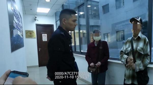 图说:疑似遭遇电信诈骗的老夫妻被民警带回派出所后继续劝阻 普陀公安分局供图