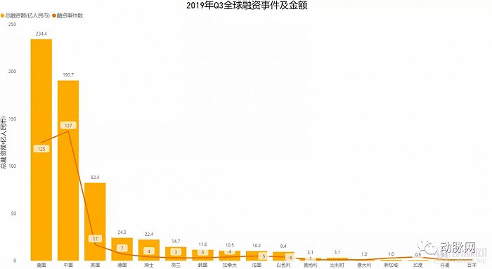 1.中国以融资事件数领跑全球,中美融资总额差距缩小,角逐还在继续,差异亦明显。