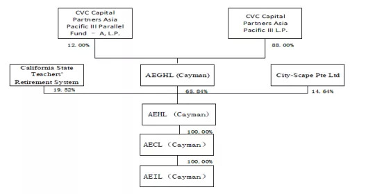 截至2013年12月6日被CVC收购前,广东启德VIE架构