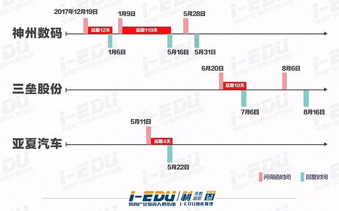 去年12月,神州数码正式发布交易报告书,收购启行教育控制权(79.45%股权),成为《民促法》生效后的第一例含有民非机构的并购案例,从披露到上会,共受到深交所3次问询。除5月份回函及时外,其它两次均延期,其中,1月9日的回函延期了整整119天。