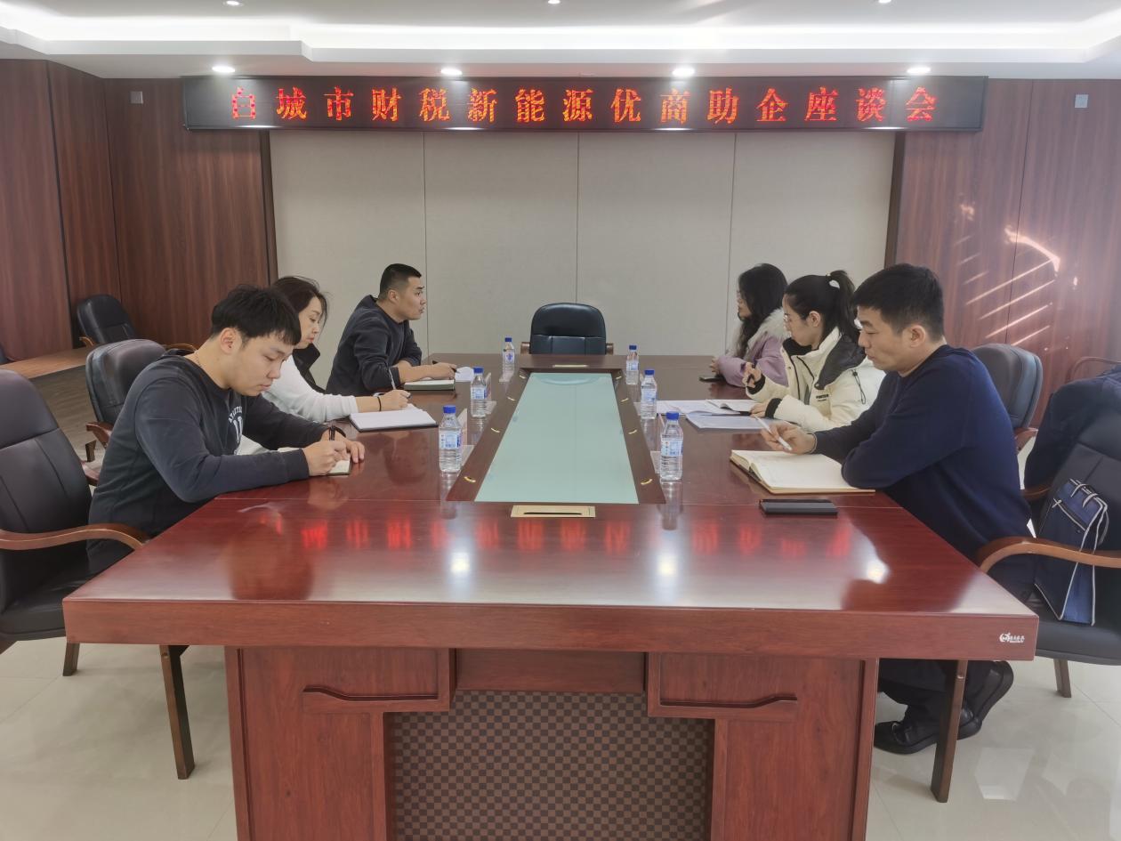 为深入贯彻党中央、国务院关于立足新发展阶段、贯彻新发展理念、构建新发展格局、推动高质量发展的工作部署,认真落实白城市委”一三三四”发展战略,切实优化税源发展环境,主动服务培育壮大税源,白城市税务局联合财政局、能源局采取座谈会、入企调研等多种方式,以扎实行动助力企业成长,共谋税源建设合力,共话经济发展新篇。
