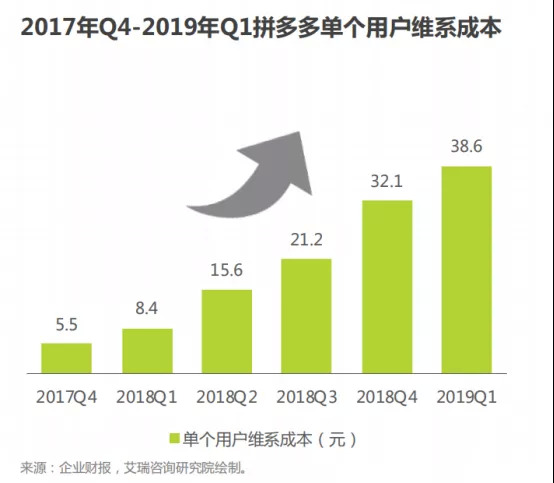 拿拼多多来说,用营销费用除以活跃买家数量,来计算单个用户维系成本,这个数字正在迅速上涨,也就是说,社交电商低价获客的优势正在逐渐丧失。