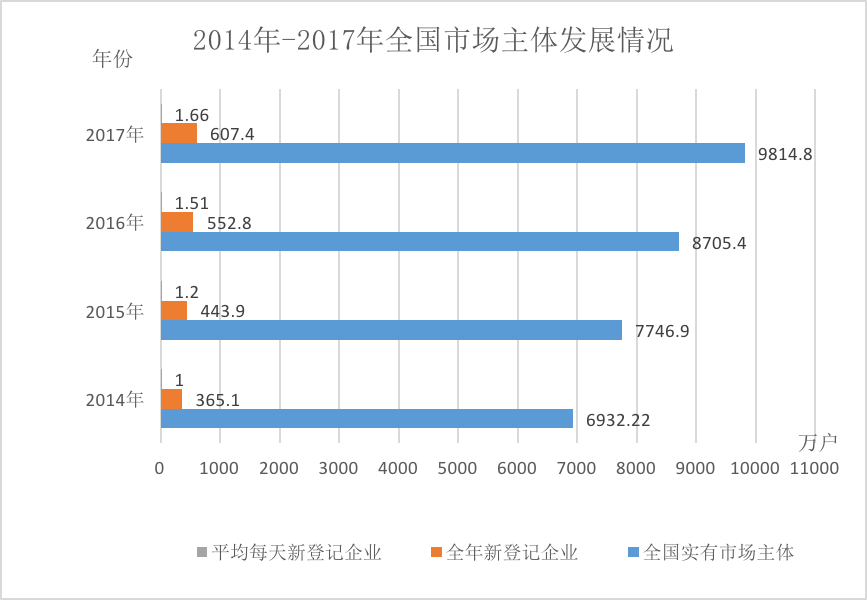 数据来源:国家工商总局 2014 年-2017 年全国市场主体发展报告