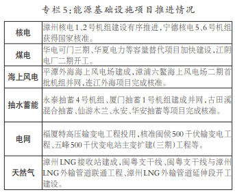 保障能源安全。统筹做好煤电油气运保障工作,强化迎峰度夏、迎峰度冬电力保供,建成投产漳州核电1号机组、华电可门三期、漳州LNG外输通道等项目,推进宁德核电5、6号机组、中石油福建LNG接收站等项目建设。保障电力供应安全,完善省内“四纵三横”主干电网,加快建设主力电源和新能源项目送出工程。