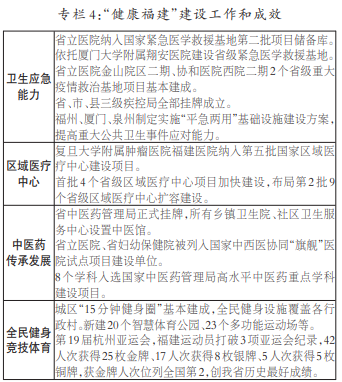健康福建加快建设。科学精准落实新冠病毒感染“乙类乙管”要求,经受住较短时间疫情高峰冲击,疫情平稳有序“压峰”转段。深化爱国卫生运动,持续推进卫生城镇创建、健康城镇建设。8个国家区域医疗中心建设项目加快推进,累计开展新技术、新项目、新服务276项,其中60项新技术项目填补我省医疗技术空白。“三医”协同发展实现部门网络互通。启动三明、南平紧密型城市医疗集团建设国家级试点工作。开展“千名医师下基层”项目,诊疗27万人次。实施母婴安全行动提升计划、健康儿童提升计划。城乡全民健身场地设施持续改善,人均体育场地面积达2.57平方米、增长6.2%。杭州亚运会参赛成绩取得历史突破。举办厦门马拉松、中华龙舟赛等各类品牌赛事超400项,开展和美乡村篮球大赛(村BA)等全民健身赛事活动超5000场。