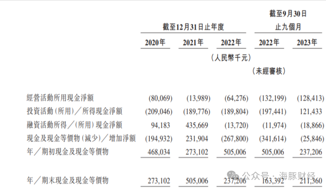 截至2020年、2021年、2022年及2023年9月末,百望云经营活动所用现金净额分别为8010万元、1400万元、6430万元及1.28亿元,截至2023年9月末,百望云持有现金及现金等价物为2.11亿元。如果持续亏损或无法及时上市获得融资,百望云的现金流将面临严峻考验。