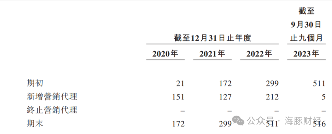 截至2020年、2021年、2022年及2023年9月末,百望云的营销代理数量分别为172名、299名、511名及516名;为了获得客户资源,百望云向代理商支付的转介费不断上涨。2020年、2021年、2022年及2023年前三个季度,百望云向代理商支付的大额转介费分别为2450万元、6420万元、1.54亿元、1.65亿元,分别占同期数据驱动智能解决方案收入的39%、36%、58%和62%。