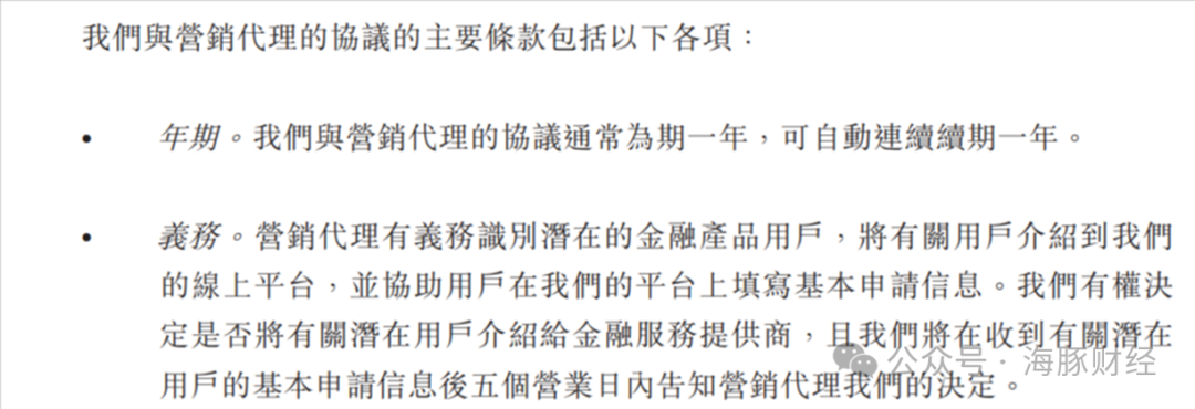 百望云虽然将自己标榜为一家线上营销和智能解决方案服务商,但在助贷业务上,百望云主要还是仰赖线下代理商转介客户资源,后者将客户介绍到百望云的在线平台,并协助用户在平台上填写基本申请信息,再由百望云将客户分类推荐给不同金融机构。本质上,百望云更像是一家连接小微企业、线下代理商和金融机构的传统贷款中介,而非一家纯粹的互联网数字科技平台。