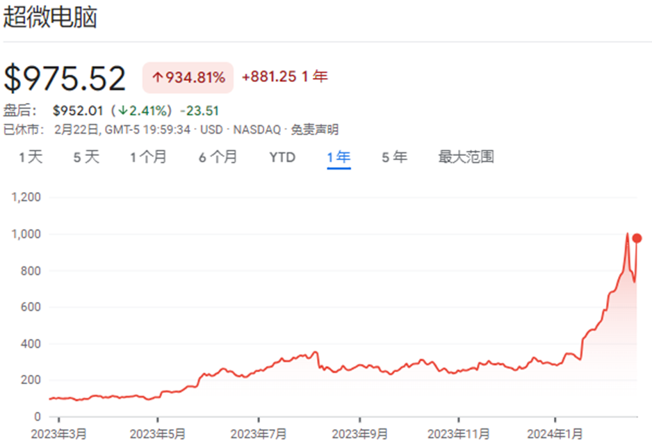 生成式AI浪潮掀起之后,超微电脑的股价随之大涨,到2023年最后一个交易日,其收盘价达到284.26美元,较2022年其股价的最低点(34.11美元,彼时市值为18.93亿美元)上涨超过7倍。