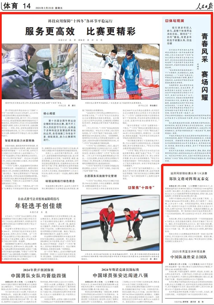 ◆《科技应用保障“十四冬”各环节平稳运行 服务更高效 比赛更精彩(聚焦“十四冬”)》(人民日报,2024年02月23日,第14版)