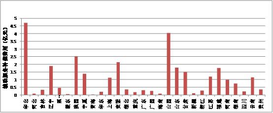2014年度全国省级及以上统调发电企业辅助服务补偿交易费用30.36亿元,华北、山西、陕西位居全国前三,详见图1-6。