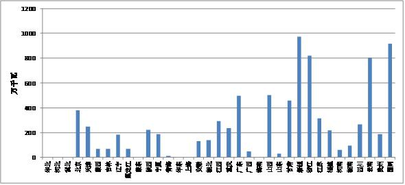 图1-3全国省级及以上新增统调发电装机容量柱状图