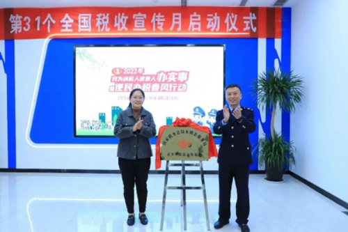 4月1日上午,东明县税务局举办第31个全国税收宣传月启动仪式,邀请团县委书记李栋雁共同为“青少年税法宣传基地”揭牌。基地设立在办税服务厅,通过导税、咨询、办理等提供现场学习和融入性体验,让青少年在潜移默化中学习到税法知识,积极传递依法纳税“正能量”,并通过“小手拉大手”,争当税收宣传志愿者,让更多的家长提高诚信纳税意识,让税收知识普及辐射到千家万户,进一步营造良好的税收法治环境。(图/刘殿圣 文/王文秀)