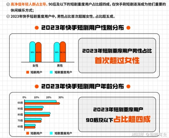 据“趣解商业”了解,2023年快手短剧日均DAU达2.7亿,每日观看10集以上的重度短剧用户数达9400万,同比增长52.6%。庞大的用户基数叠加平台激励政策,也吸引了创作者加入;截至2023年年底,快手平台短剧创作者规模已超10万。