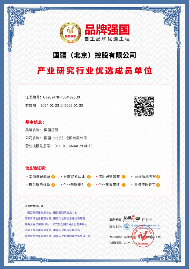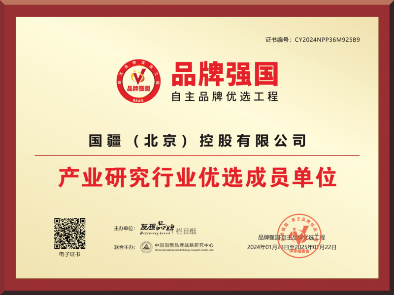 脱颖而出!国疆控股荣获品牌强国产业研究行业优选成员单位称号