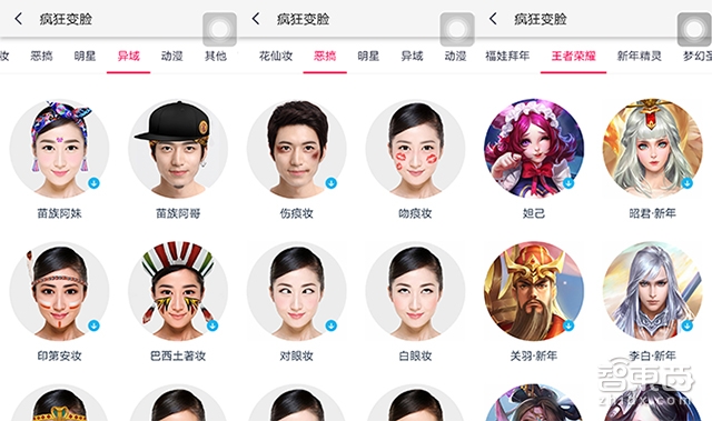 除了换脸外,腾讯天天P图此前还曾推出一系列类似的美妆特效,比如“武媚娘妆”、“关羽妆”、“印第安装”、“王者荣耀妆”等,基本就是天天P图的一贯套路,抓准一个热点事件/热点IP,推出与换脸/美妆相关的一套滤镜,其技术路线大同小异。