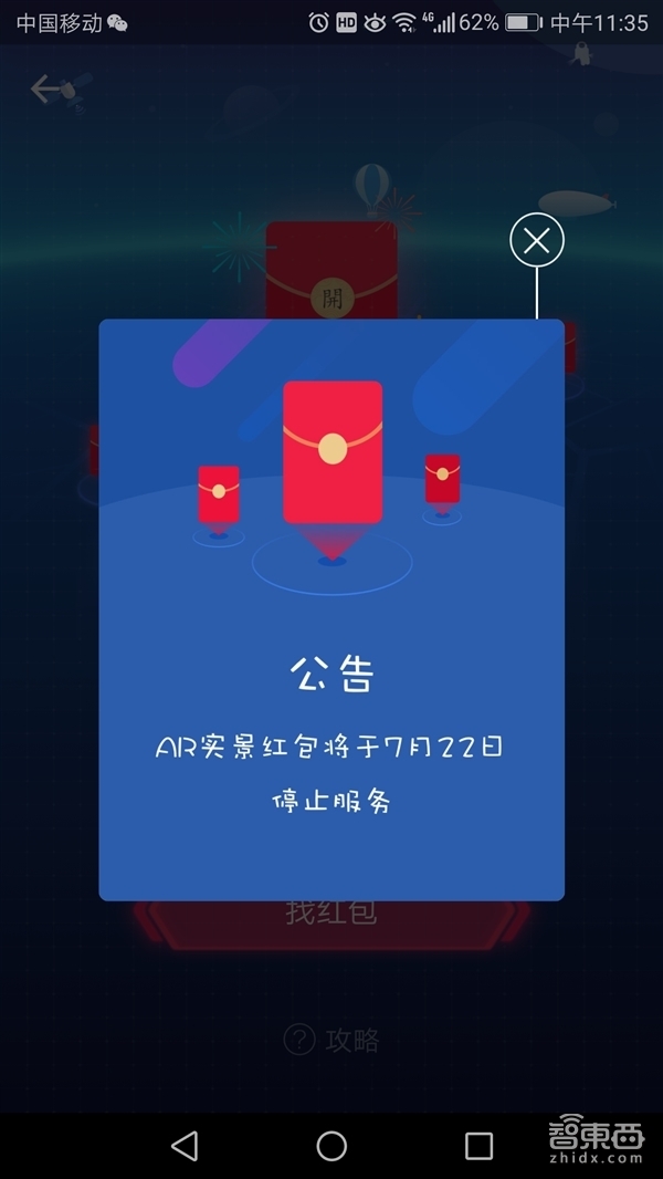 春节过后,AR红包也开始逐渐淡出大家视线,当时支付宝并未选择关闭AR实景红包,只是不再做推广,入口也隐藏的更深。7月中旬,支付宝开始在红包界面发布公告称:“AR实景红包将于7月22日停止服务”。官方未作任何解释,但打开AR实景红包只能看到空荡荡的画面。如今这款曾经火爆一时的AR应用终于正式迎来它的告别之日。