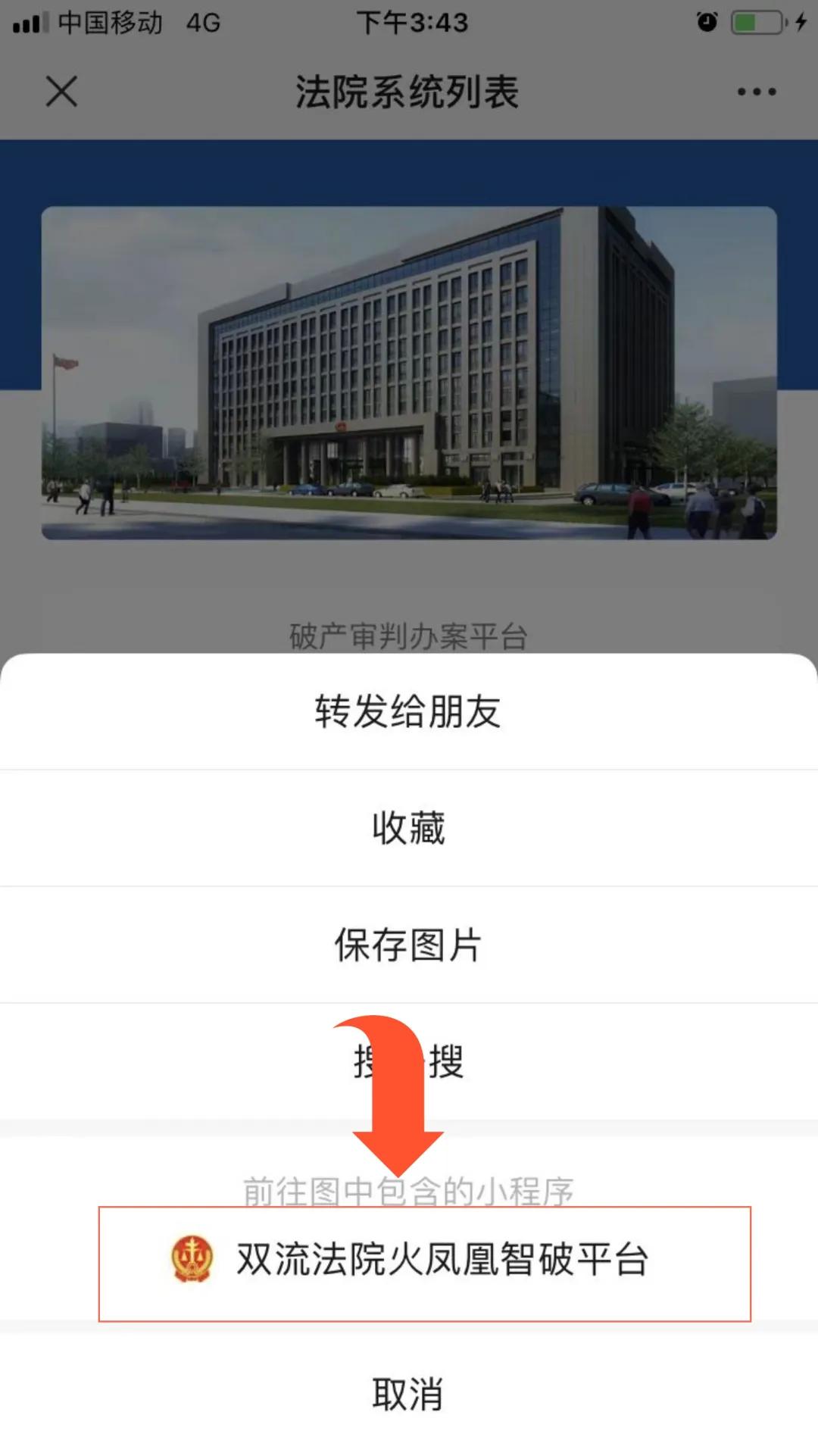 关注后,选择“法院系统”,点击“法院系统”。如下图所示: