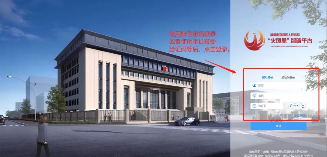 2 ► 进入登录页面后,债权人可使用短信中的账号和密码进行登录;若账号为手机号码的,也可选择验证码的形式进行登录。如下图所示: