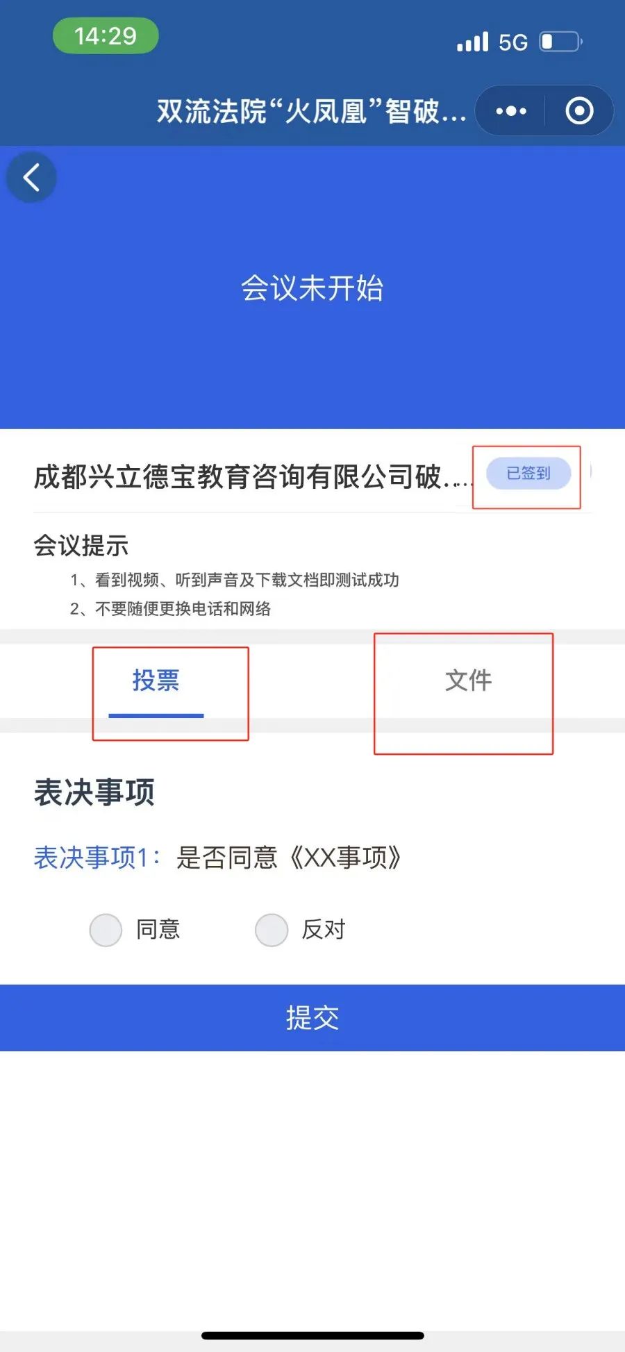请各位债权人使用微信APP参加会议。为维护各位债权人合法权益,建议在安静场所参加会议。手机请连接网速较快的无线Wi-Fi网络,尽量减少使用手机流量上网,保证网络稳定。同时避免因中途接电话后影响开会效果。