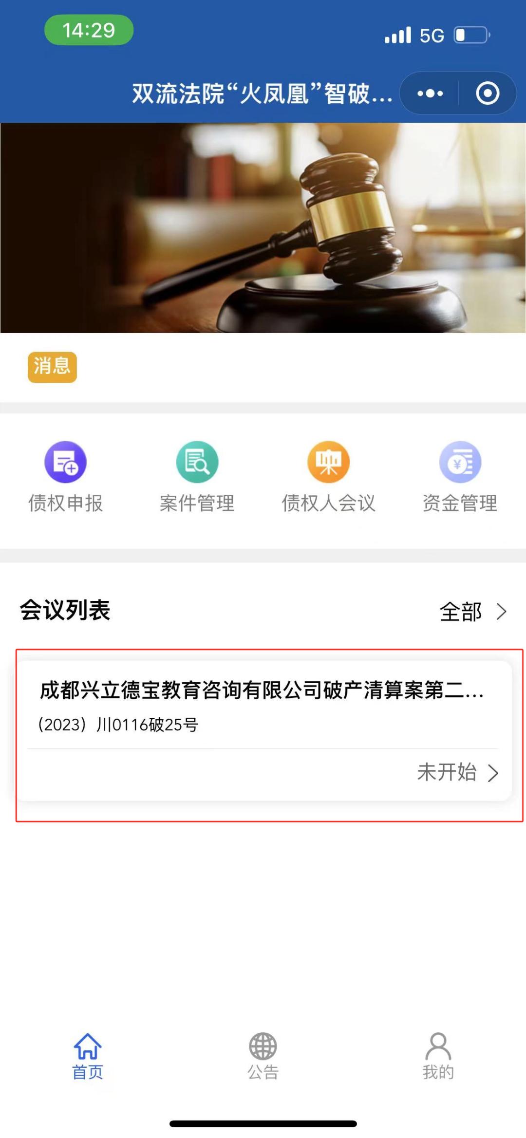 成都兴立德宝教育咨询有限公司破产清算案第二次债权人会议定于2024年3月13日上午9点30分准时召开。本次债权人会议通过“火凤凰智破平台”,以线上网络直播的形式召开。