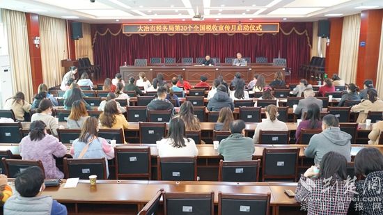 此次宣传月以“税收惠民办实事 深化改革开新局”为主题,大冶市税务局党委委员、副局长刘俊致辞,该市100余名纳税人代表参加了启动仪式和增值税业务培训。